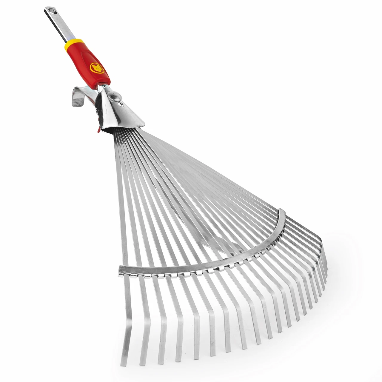De verstelbare bladhark UC-M van Wolf Garten is ideaal voor o.a. het verwijderen van bladeren van uw gazon. De platte tanden zijn vervaardigd uit flexibel, gehard staal. De bladhark heeft een verstelbare werkbreedte van 36 – 58 cm en wordt geleverd exclusief steel. De Wolf Garten verstelbare bladhark is met name erg geschikt in combinatie met de multi-star aluminium of essenhouten steel. Afhankelijk van uw lengte worden de volgende stelen aangeraden voor het voorkomen van rugproblemen.